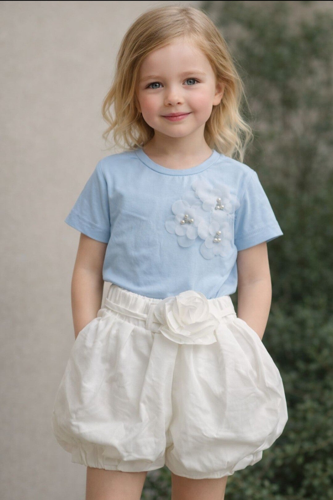 Super leuk setje met een pof broekje de roos kan je er eventueel ook vanaf halen dat is een riempje